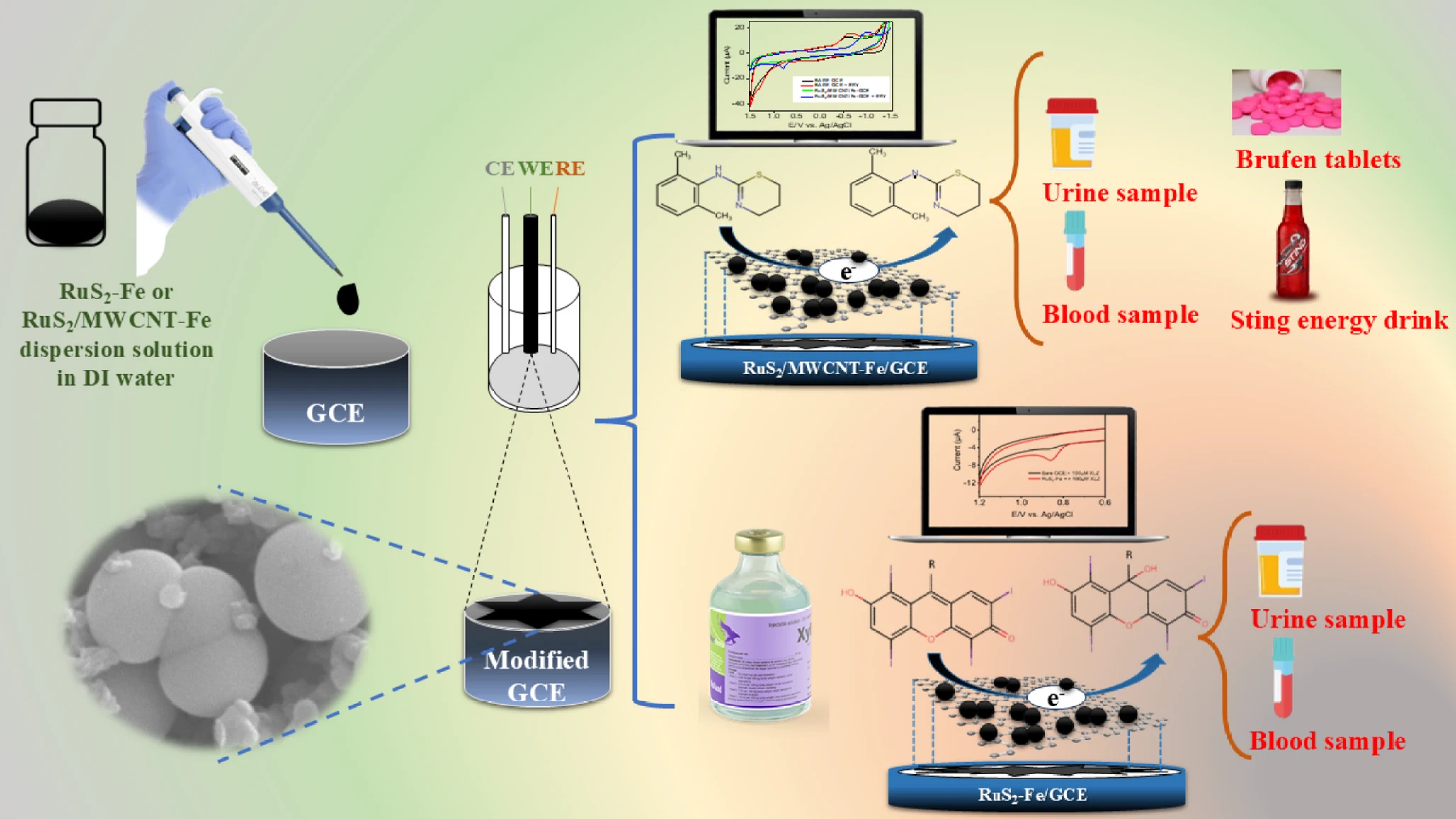 Fe-Doped RuS2 nanodots/MWCNT electrodes for dual detection of xylazine and erythrosine: experimental and computational insights.